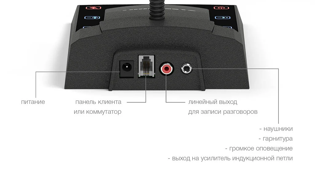 Режим «симплекс» позволит уверенно общаться с клиентом при высоком уровне шума, а кнопка вызова позволяет произвести вызов кассира (оператора) в случае его отсутствия на рабочем месте. Рупор подключается непосредственно к расположенному сзади пульта самозажимному разъему.