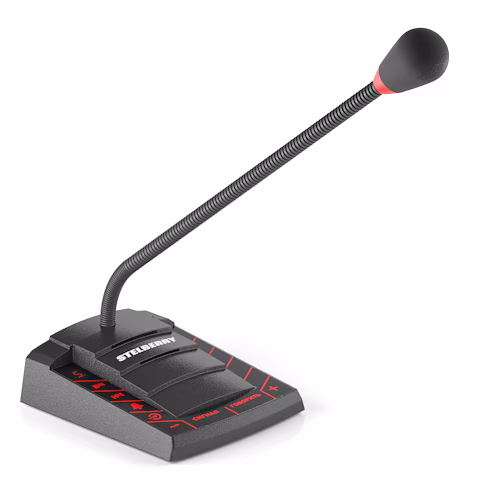 Пульт громкого оповещения STELBERRY F-220 оснащён направленным HD-микрофоном с защитой от электромагнитных помех.